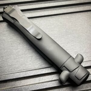 Holen Sie sich das Beste aus beiden Welten mit dem automatischen 9-Zoll-Italienischen Stiletto OTF. Dieses Messer vereint auf brillante Weise den klassischen Stil eines italienischen Stilettos mit der taktischen Geschwindigkeit eines OTF. Ein frontseitiger Daumenschieber feuert und zieht die Klinge mit sanfter automatischer Präzision ein. Ergänzen Sie Ihre Sammlung mit dem 9-Zoll-Italienischen Stiletto OTF Auto um ein einzigartiges Design.