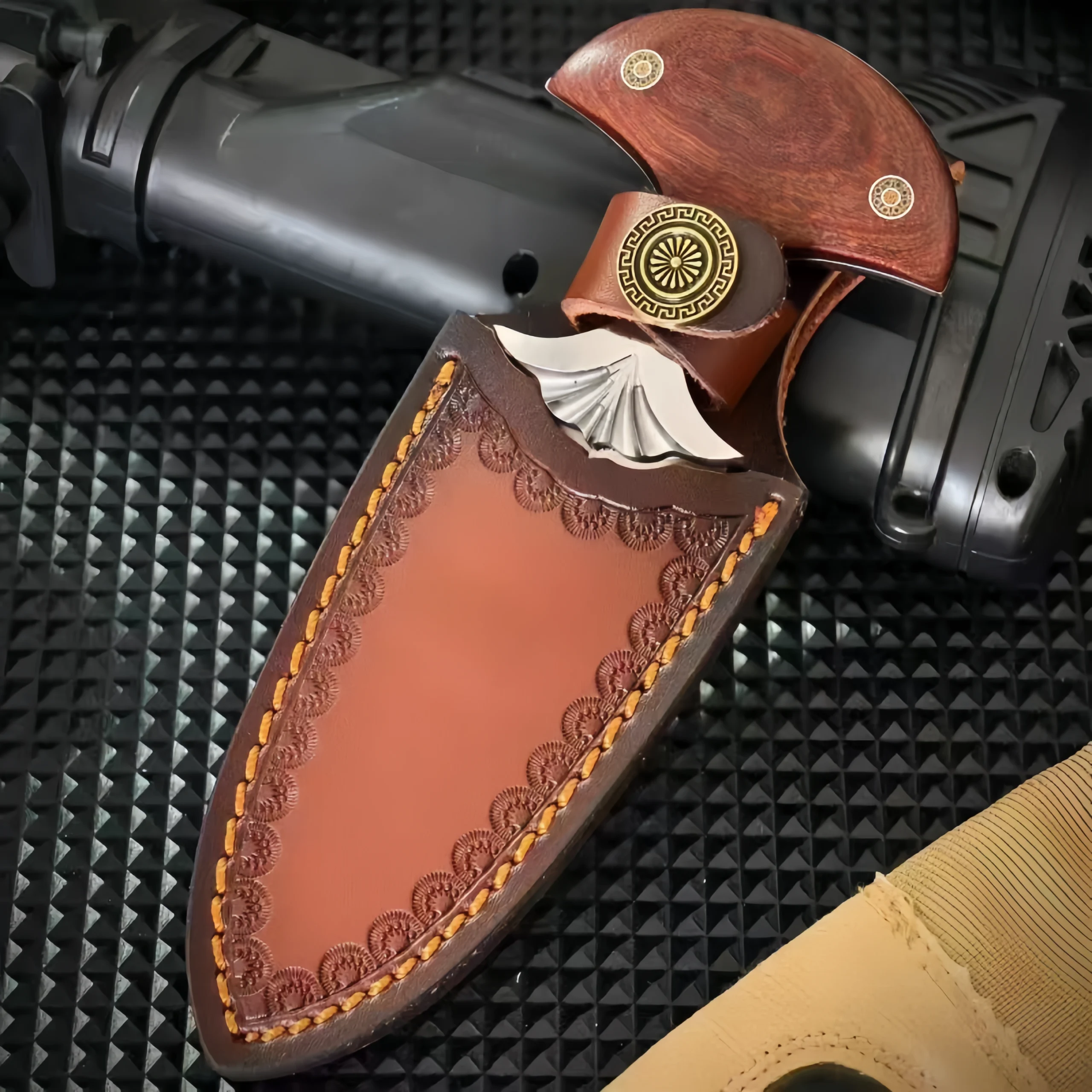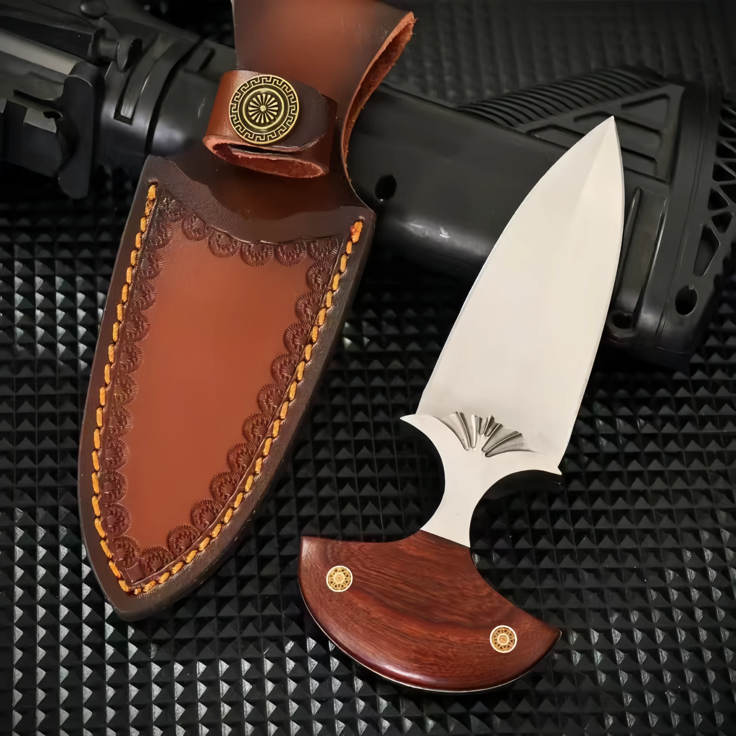 Additional Materials: Hand-carved cowhide sheath + gift box